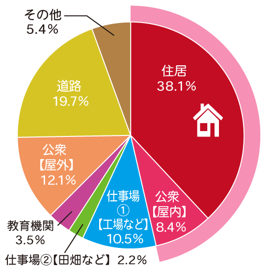 住居+公衆【屋内】と合わせると46.5%と、屋内だけで全体の約半数近くを占める数字となっております。