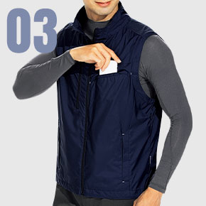 袖を外してファンを収納。袖をファスナーで簡単に取り外しでき、軽量ベストとして着用できます。