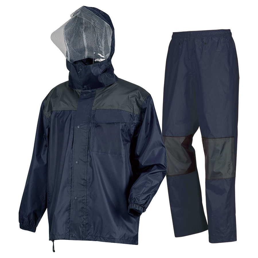特徴 | ●ヘルメット対応フードで雨天時の作業をサポート ●従来のPVC素材よりも40%軽量 ●信頼の防水性、生地耐水圧15,000mm ●肩・膝に耐久性の高いオックス生地を使用 ■耐水圧(B法):15,00mm |