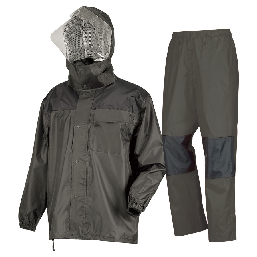 特徴 | ●ヘルメット対応フードで雨天時の作業をサポート ●従来のPVC素材よりも40%軽量 ●信頼の防水性、生地耐水圧15,000mm ●肩・膝に耐久性の高いオックス生地を使用 ■耐水圧(B法):15,00mm |
