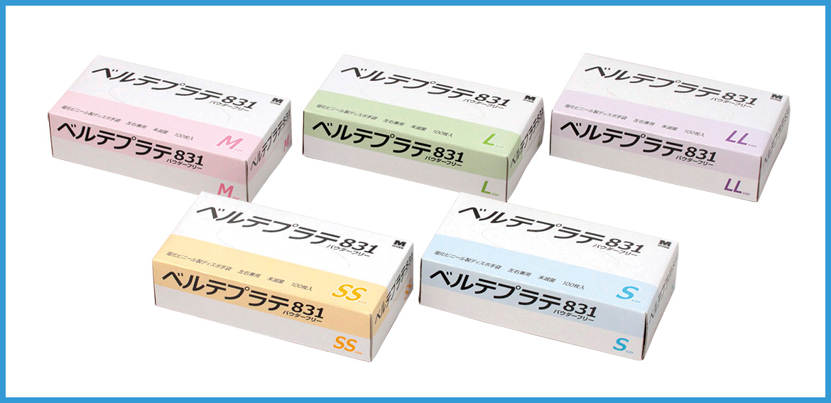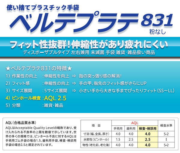 PVC手袋 ベルテプラテ 831 粉なし SS 100枚の商品詳細画面トップへ戻る