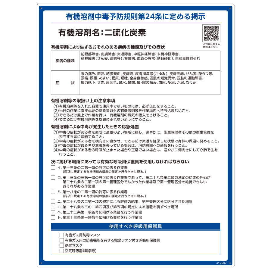 有機溶剤標識 RAE−502 二硫化炭素 412502