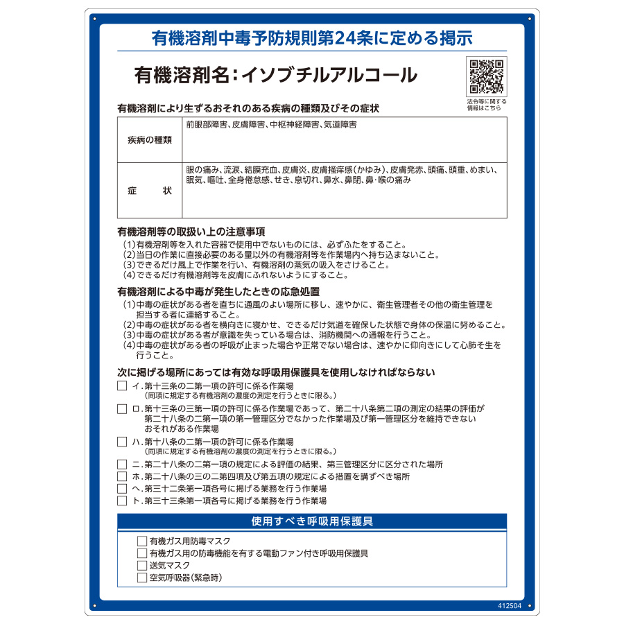 有機溶剤標識 RAE−504 イソブチルアルコール 412504