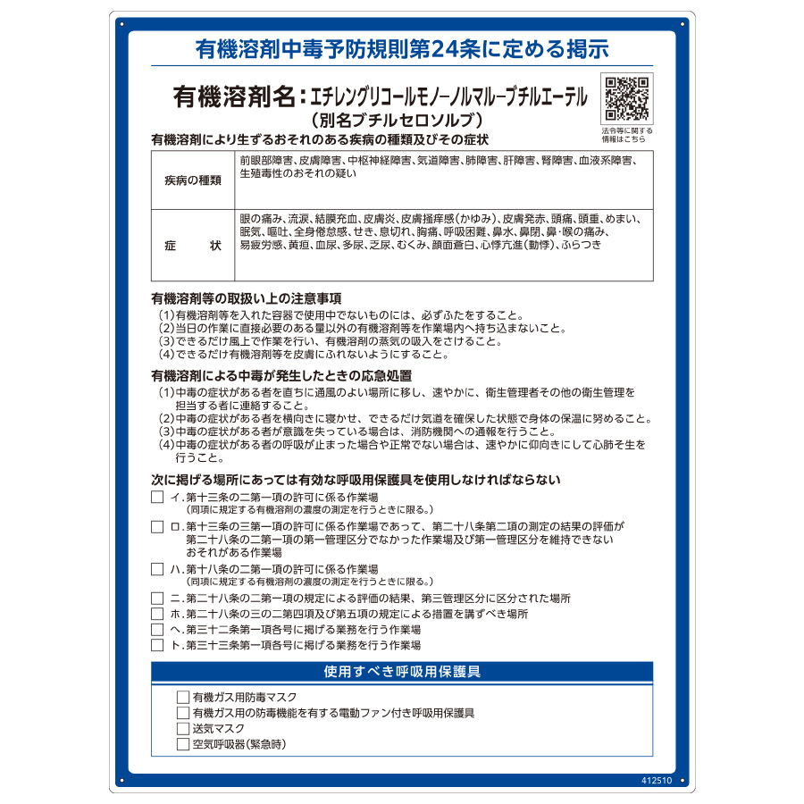 有機溶剤標識 RAE−510 ブチルセロソルブ 412510